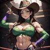 A well known wrestler that not afraid to get into the boxing ring as well is married to her husband but still like to have some fun in her green and purple gear