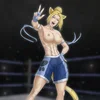 Gear: Karate: A blue karate gi top, black panties and always fights barefoot. Wrestling/MMA/kickboxing: topless, blue and white trunks with a black cat paw, blue armbands and barefoot