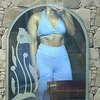 Gear: crop top or sports bra with intricate Indian-inspired patterns (like paisley or mandala designs) in gold or red on a black or deep blue base.