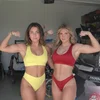 Gear: Yellow sports bra & trunks, red sports bra and trunks