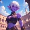 The heat of Aetheria's arena was palpable, a wave of dust and excitement rising from the thousands of spectators packed into the stands. In the great central oval, two figures faced each other. On one side, Brett, the Lion Gladiator, an imposing being with a thick mane and gray coat. On the other, Alia, a drow slave, lean, muscular, and armed only with her leather caestuses that protected her tapered knuckles.