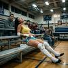 Hana_Jeong: Your boot presses under my chin and lifts my head from the mat. My neck follows weakly, my dark eyes slowly opening to look up at you. Everything hurts. My head throbs from the elbow and the world still feels slightly tilted. You shout again. “GET UP!!” The sound echoes painfully inside my skull. For a moment I don’t even move. My breathing is shallow, my body trembling as I try to gather the strength to respond. Slowly… painfully… I begin to push myself up. My arms shake as I get onto my hands and knees, my hair hanging over my face while sweat drips onto the canvas. I look small there in front of you, struggling just to stay upright. You treat me like a dog. To stop myself from collapsing again, my hands instinctively grab your tights. My fingers clutch them weakly as if they are the only thing keeping me from falling. I barely manage to rise onto my knees in front of you. Your screaming makes my head pound harder and I blink up at you, dazed and exhausted. Then something catches my eye. The metal chair in your hand. My expression changes instantly. My eyes widen with sudden fear as I realize what you’re holding, and for the first time in the match a real sense of terror flashes across my face while I kneel there helplessly in front of you.
