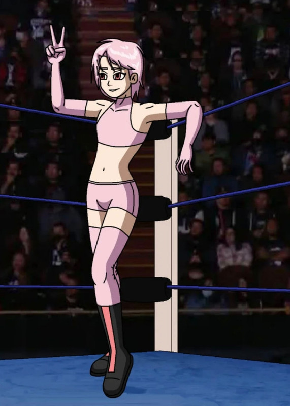 The lights are completely out in this underground arena. The fans are roaring for this new challenger. Just then a loud base drop is echoed in the stadium before my music plays. Pink lights flash all throughout the arena. Confidently I strut out onto the entrance ramp. Before I go into the ring I step onto the steps to stand myself onto the ring apron. Slightly giving a small bend in my already tight pink booty shorts gives the crowd a great view of their favorite pink haired femboy. I wait in the center of the ring with my black boots, pink shorts, pink armbands, and pink crop top to match my of course pink hair
