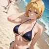 Reika_Kitami: The sun beats down mercilessly on the sandy wrestling ring nestled between towering palm trees along the Venus Isles' pristine shoreline. Waves crash rhythmically against the shore in the distance as the salty sea breeze tousles Reika's blonde tresses framing her delicate features. Her almond-shaped blue eyes gleam with sadistic intent beneath long lashes as a wicked smile plays across full, glossy lips.The striking Japanese beauty stands tall, her athletic physique honed from years of intense sex. Taut muscles ripple beneath smooth skin as she stretches languidly, putting her lean limbs on display. Reika's perky breasts strain against the confines of her skimpy black triangle top tied snuggly around her neck. The flimsy garment barely covers her breasts while providing teasing view of underboob.