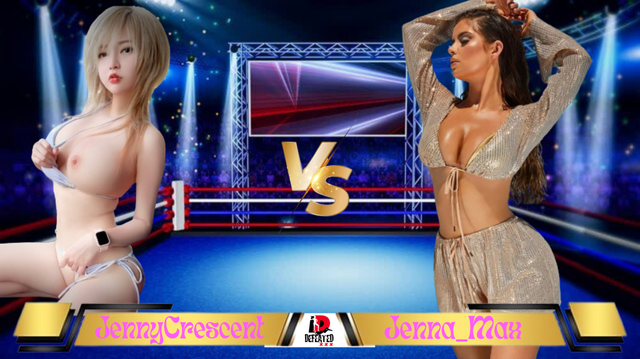 02:22 Jenna_Max: The rumble of the crowd dies down when the bell rings to mark the final round of what for me, has been another exhausting, exhilerating epic in this tournament. As I make my way out of my corner and into the full glare of the stage lights, toe after hell, the light catches on the film of sweat coating my body and brings out the rosy flush radiating across my swaying breasts from each, firm, bullet like nipple. "I'd say... may the best girl win but you know... I don't want any spoilers when I make ya squirm bitch!"