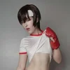 Cosplayer_Zoe: *I slam into the ring and flop forward a few feet, clutching my head and weakly moaning.* “F-Fuck…” *I say, getting up onto all fours.* “d-damn…” *I say in a weak, almost pouty voice. My leotard has ridden up slightly.*