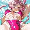 Kiko_Sage: Kris uses her superior size and strength to push Kiko back, his element of surprise gone. Kiko steps back one step, then another, and another, until he trips over someone's legs and lands down on his back. His arms wrap around Kris' shoulders to try to pull her down with him, but if he does she'd end up on top. Feeling her breasts press against his chest, feeling her member growing under his touch, it's enough to get him hard and before long his member starts to poke against his bikini bottoms.