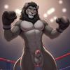 Lion_Fighter_Brett: I would smile at you after I push you off me. As slide across the ring somewhat. As I would see your sexy smile as I hear your comment "Heh thanks." As i got up as i charge at you for a body splash, but I get caught in your bear bug, as my bulge press against your crotch, as I would grunt to your squeeze, as my hands try to pry your arms apart.