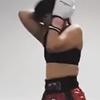 <MuayThaiFera> We join mid ring and we start our aggressive dance. We're centre of the ring. The canvas and ropes all white with the black RISE branding written on them, our colourful figures wearing pink, black, green, white and gold flashing mid ring to contrast. My skirt swaying with every minor move I make. You block the jab and as I kick, you half check, taking it on the calf. I put my weight into the hook as you parry and create a half step of space. Coming back towards me you counter with a straight punch. My eyes stay stoic although my heart races as I have to quickly spring back into southpaw to avoid the punch, as I try and switch my stance though you reap a nice hook across my temple which keeps me on the spot, my guard trying to keep my face protected as your knee like a knife is sharp. It arcs up, your foot perfectly pointed and leg clenched as your spear point knee thumps into my body. I let out an audible "hufffffff" as I bend slightly and take a step back, the knee hitting perfectly between my trunk line and sports bra into my exposed body. As I set back in orthodox I try to lift my front knee and push forward, my toes pulled right back to try and stab the ball of my foot into your naval, landing my foot downwards for an attempted right uppercut, left hook hoping to pepper your guard early.