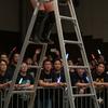 Hana_Jeong: I walk toward the big ladder. on the top of its four meters of cold steel I will perform my finisher move, the moonsault. It looks like a mountain. I grab the first rung—and almost miss it. My fingers slip, slick with sweat and blood. The metal rattles violently under my weight, the whole structure shaking, and the crowd erupts when they realize what I’m trying to do. My heart is hammering so fast it hurts. One rung. Then another. Each step feels wrong. My legs tremble uncontrollably, calves cramping. My ribs scream every time I pull myself higher. My vision pulses white at the edges, narrowing, the lights above smearing into halos. Halfway up, my arms start to fail. I stop, forehead resting against the ladder, chest heaving, saliva and blood dripping down onto the mat below. My lungs can’t get enough air. My fingers feel numb, barely obeying me. I hear the crowd, but it sounds distant now, like I’m underwater. I look down. I see you sprawled across the ladder bridge, broken, barely moving. I see the rise and fall of your chest. Each rung is agony now. My shoulders feel like they’re tearing out of their sockets. My knees buckle, and for a terrifying second I almost slip—but I cling on, nails scraping metal, a desperate, animal sound ripping out of my throat. When I finally reach the top, I don’t stand. I can’t. I crouch there, swaying, arms hooked desperately around the ladder’s peak, my whole body shaking so badly it’s visible to everyone. The height is unreal. The ring looks small. You look so far away. One wrong move, one slip, and this ends very differently than planned. I force myself to rise, inch by inch, legs screaming, balance barely there. I spread my arms slowly, testing them, feeling how little strength I have left. My breath comes in sharp, panicked gasps. I look down at you one last time. This isn’t about winning anymore. It’s about proving that I'm the better woman. I embrace the ladder top... I need to recover at least for some seconds...