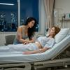 Hana_Jeong: Your whisper breaks something soft inside me. I lift my head fast when I hear your voice, relief flooding my face the instant I see your eyes open. “Sara…” I slide my chair closer and take your hand gently in both of mine. “No… hey… don’t talk,” I murmur right away, shaking my head with a small, tender smile. “You don’t need to say anything.” My thumb strokes your fingers, slow and soothing. “How do you feel? Are you in pain?” I glance at the cup on the table. “Do you want some water?” I tuck a strand of hair away from your face with extreme care, avoiding every bandage. “The doctors said you’re going to be fine,” I whisper softly. “The surgery was complex… but one hundred percent successful. They were very clear about that.” My eyes shine again, but this time with quiet relief. I let out a shaky breath, then my lips curve a little.A tear slips down, but I’m smiling. I brush my thumb across your knuckles. “So now you just rest, okay? That’s your only job.” I lean closer, voice warm and steady. “I’m right here.”