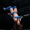 Hana_Jeong: I lean close to your ear. My voice drops to a broken whisper. “It will end soon. I promise.” My hand cracks across your cheek with the last strength I have. I guide and push until your body falls onto the table. One arm slips off the side and hangs loose. You do not react. I look up. The top turnbuckle feels impossibly high. Like a mountain. I climb anyway. Slow. Unsteady. My foot misses once and I nearly fall. The arena swims below me. I reach the top and turn. You lie still on the table. No movement. No defense left. I remember Mizuki’s voice from years ago. Breathe. Find the center. I pull air into my lungs and hold it. Control. Focus. I press a kiss to my right wrist. If this goes wrong, maybe I will see my parents again. I rise to my feet on the turnbuckle. Balance shaking. Arms spreading. The noise of the crowd stretches into a distant roar. Then I jump. My body curls and turns, carving the moonsault through the lights. For one suspended instant there is only silence and white glare above me. I close my eyes and let gravity take me down toward you.