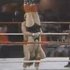 NinjaJoe: I roll myself slowly to the ropes, and pull me up vey slowly. Still dizzy of ur kick. I hanging at the ropes, need a break and try to decide what to do. See u still sitting on canvas I wanna try to take that little little advantage, but I’m just able to do a simple action, stumble towards u and aiming to kick ur head with my right feet from the side. Hope I will take more time to recover.