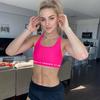 The lights drop suddenly into a pulsing pink hue, and the opening beats of "Hello" by TWICE blast through the arena. A cheer rips through the crowd, louder and fuller now that they're familiar with what's coming. A spotlight swings to the top of the ramp—and there I am. I step out onto the stage in rhythm with the music, hips swaying with confidence, chin slightly lifted, a smirk teasing the corner of my lips. My long brown hair is tied in a high ponytail, glistening under the lights. I’m rocking a bright pink sports bra—flawlessly snug, custom Under Armour work—paired with black board shorts that hug my hips and ride low on my waist, showing off every inch of muscle and power I’ve worked for.