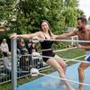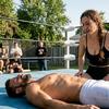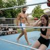 14:44 Edoardo: Io mi chino per non farmi spingere. Metto la spalla sulla tua pancia e ti prendo con le mani dietro le cosce. Poi con uno squat ti sollevo per posizionarti seduta sul cuscinetto più alto nell'angolo del ring. Mi volto e ti carico sulle mie spalle, in posizione seduta. Voglio finirti. "Preparati alla Electric Chair Drop" dico chiamando una delle mie mosse preferite che mi hanno dato diverse vittorie