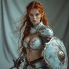 Ara_Galavendor: I feel your sharp jagged teeth sink into my cleavage as I cry out in pain. "Fuck!" I shout as I feel more blood start to trickle down. I let go of your dagger holding hand and throw my fist towards you, hoping the edge of my shield catches your head to dislodge you off me.