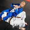 01:34 Francine: I keep choking you tighter and tighter!I'm on my back looking up at youas I keep squeezing your neck, your arms trying to pull mine off but its not happening! I try and bridge trying to throw you off of me as I plant my feet on the mat and throw my wide hips up.