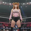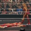 Staceyjobbergirl: Having laid over the side pretending to be stunned. I try to sneak my way up using the ropes from behind Rya. As she moves to clothesline Brooke over the top rope I run at her from behind trying to drop kick her with both bare feet to the back and send her over the top rope as well.