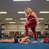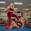 Blonde_Amazon_Beth: I walk the ramp like I own it. If you saw me you could be forgiven for thinking I was ready to go to a party. I am wearing shiny red pants and top. My top leaves my shoulders and arms bare and also shows off my taut abs. I walk wearing heels that would be more at home on a fashion ramp then wrestling ring. I calmly walk to the ring climb the steps then grabbing the top rope easily vault over the ropes and land in the ring. Putting my handbag and my heels in one corner I turn to finally face my tiny opponent