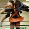 Brooke_Yobidashi: I continue to kick my legs in desperation as your hand approaches my upper thigh. Not trusting that you aren't going to take a shot. Finally you release me. Because I was kicking up with my legs I fall to the mat landing on my shoulder and upper body. My hair covering my face as I tremble a bit. My thighs burning. I no sooner hit the mat and my head is violently jerked up. Geeze she doesn't give me a second to breathe, I think to myself. You lift me up and wrap your arms around me. I gasp out like a balloon losing air. My head resting on your left shoulder. My feet a good 6 inches off the mat. My right arm hangs down over your back. My sore sternum feeling like a vice is crushing it. My face is completely covered by my hair as very faint grunts are heard. My head lays down and drool runs down your back. Into the crease on your back and wetting your bottoms. Each squeeze you do making me leak like a water gun.