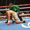 ....PPPPFF...your glove slams into my chin, popping my head back and downwards as the force staggers me back into the ropes, nearly tripping over my feet as I bounce into them, glove up for a moment until I feel the delayed pain from your liver shot run through me as I grimace and take a knee along the ropes, cradling my side as I bite down on my mouth guard...