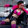 Blaze_Freya: -After hearing about this 'Sonny Kiss' and seeing some footage, I wanted to find out firsthand what all the hype was for. Sure, I saw some flashy moves, and you seemed very professional, a perfect addition to the TTW roster. But could you really BRING IT!? That's what I wanted to know. So there I stood in the middle of the Total Temptation Wrestling ring, dressed for action in my hot pink and black attire, consisting of booty shorts-style tights, a furry 34C sports bra and knee and kick pads. I also have on a leather jacket with fur around the collar and wrists to match my top, a custom black horned hat and star-shaped pink shades. You can see that I have lots of piercings, multiple earrings in both ears, dolphin bites on my bottom lip and a belly button stud. My theme song, "Collapsing" by Demon Hunter is fading out and I have a mic in one hand and my rose in the other-