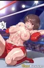 Junko Shishido: As our gloves imprint themselves on each other, we each stand firm, unflinching, not wanting to give the other any ground. What is most amazing to me is that fact that you haven't gone down, a testament to your new training, no doubt, but you will taste the canvas soon enough. You stumble backward as a mix of saliva and blood dribbles from your lips, yet still you are upright though with hazy vision. While I come for you again, shooting my left hand forward, you fire off a right hook, surprising me. Even in your current state, it's still accurate. "Guuggghh" Though my left just barely missed its target, I still landed my punch well enough to see a blood spatter, however, at the same time, your right hook caught me, sweat sprays the canvas, my face turned and my right tit gets tagged by your jab.
