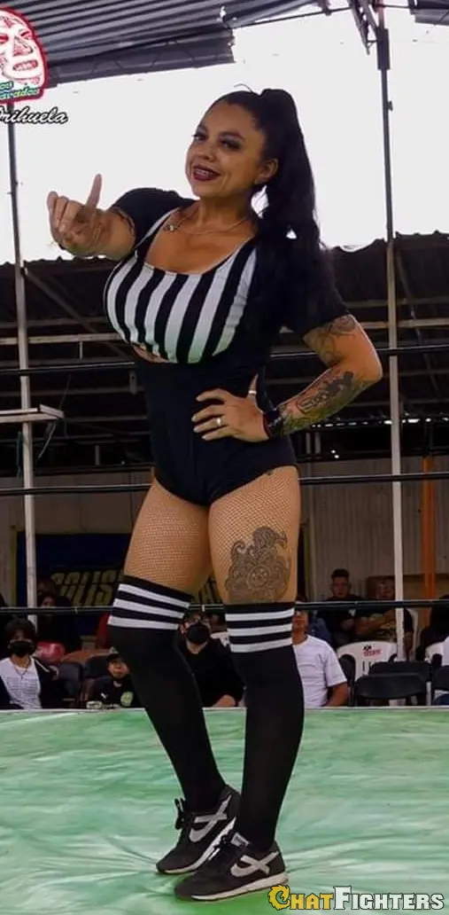 Lady_Darcy: I look over the ring apron and see the altercation between your brother and the referee, him striking the referee and security rushing to ringside. I know we still have time, and when I turn, I see my husband grabbing your hair to haul you up to your feet. I clench my fists, knowing the routine well, aiming a right hook and then a left hook at your belly, leaning my hefty, voluptuous, 170lbs body into the blows, my 38DD tits and curvy ass swaying wildly. And then I will help my husband pick you up and roll you back into the ring under the bottom rope.