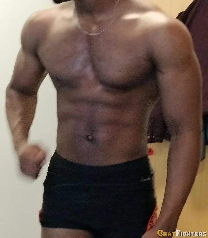 Sweet_Jamaica: Walking slowly and purposefully to the centre...my sweet smile lighting up my face as I watch you...eye to eye contact....looking so innocent as I raise my arms and offer my cute body to the referee for a search..."Put your arms down" she growls at me...as I do I place a finger on your big chest..."My! aren't you a big boy" I whisper loudly as I let my finger slide south over your big belly, still keeping eye contact, but can't help hearing a snigger from the referee