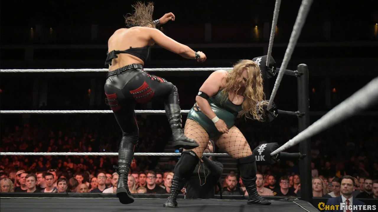 Announcer: “Our next match on the… WWE… SPRING BRAWL… PPV… is for ONE FALL with a TWENTY MINUTE TIME LIMIT…” The crowd cheers. “Please welcome to the ring our first competitor… she stands 5’4” tall and weighed in at 190lbs… she hails from London, England and is the… self-proclaimed… BIG-TITTED BITCH… here is… BUSTY… BECKIE… KEEGAN!!!…”
