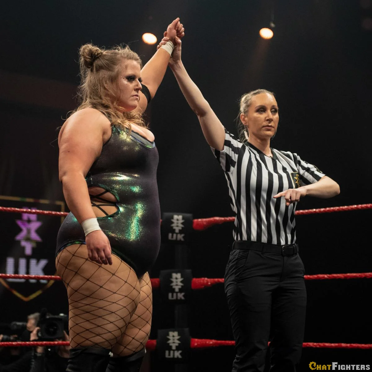Busty_Beckie_Keegan: As the referee raises their arm for the three, you start to struggle, gutsy, desperate, you try to push off my 190lbs, but you can't do it, you collapse back to the canvas and the referee's arm comes down... THREEE!!!... I smirk as I hear the bell ring... DING!!... DING!... DING!!... the referee reaches out and grabs my arm and I slowly peel off you and get to my feet... but as I do so I aim a hard kick into your side... just to make sure you know who won the fight... the announcer declares... "YOUR WINNER... BY PINFALL... BUSTY.... BECKIE KEEGAN!!!" as the referee raise my arm I look over at Sheil and Mark the CEO, smiling and gloating...