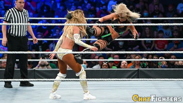 Terryn_the_Terror: I can’t take it anymore. Sitting backstage watching the match on a closed-circuit TV in the gym, getting more and more annoyed watching Beckie just throw her weight around and call it wrestling. After watching you pin Linda and then take the mic and call out Sheril, adrenaline starts to pump through my body. I'm not sure if Sheril is going to respond to you or not... but I sure as hell am! I dash out of the gym and run down the halls backstage, making my way toward the ring entrance then busting through the curtains, exploding out from backstage to the shock and surprise of the crowd, already in my black and silver ring gear. I sprint toward the ring, fire in my pretty eyes as I dive head first under the ropes, sliding into the ring and seamlessly pushing up to my feet, immediately darting toward you, not giving you any time to think as I go airborne and twist my body aiming to stab my boots hard into your chest, stabbing you like a dart with a dropkick, trying to knock you back against the ropes...