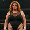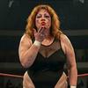 LipstickPatti: as you turn your back to me and walk to your own corner i don't even wait for the bell, knowing it will be ringing in a moment...i rush toward you making all my fatty rolls jiggling and grab your blue hair...forcing you to bend backward...i hook my arms around your throat forcing you to look up at the lights and i lift my left arm up doing a fist with my hand and ram it between your tits as hard as i can looking to make you drop down onto the mat...