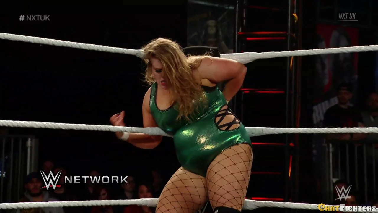 Announcer: The sound of the Announcer breaks through in the darkened arena... "Welcome to tonight's... WWE MAIN EVENT... A HARDCORE MATCH... with... NO TIME LIMIT... WINNER by ONE FALL or ONE SUBMISSION inside the ring or a 10-COUNT KNOCKOUT inside or outside the ring... There are NO LIMITS on WEAPONS and NO DISQUALIFICATION... Introducing first... she is a veteran hardcore fighter and an established star of the WWE roster... hailing from LONDON, ENGLAND... standing 5'4" tall and weighing 190lbs... she is the self-proclaimed... BIG TITTED BITCH... here is... BUSTY... BECKIE... KEEGAN!!!..."