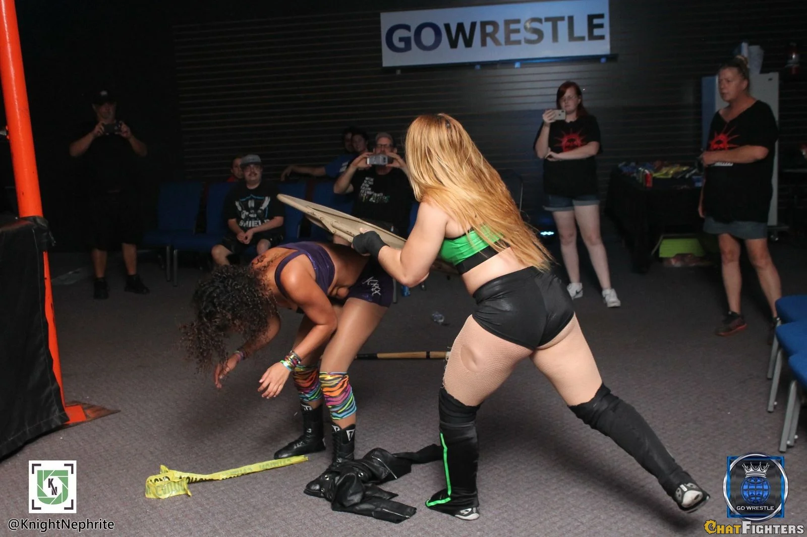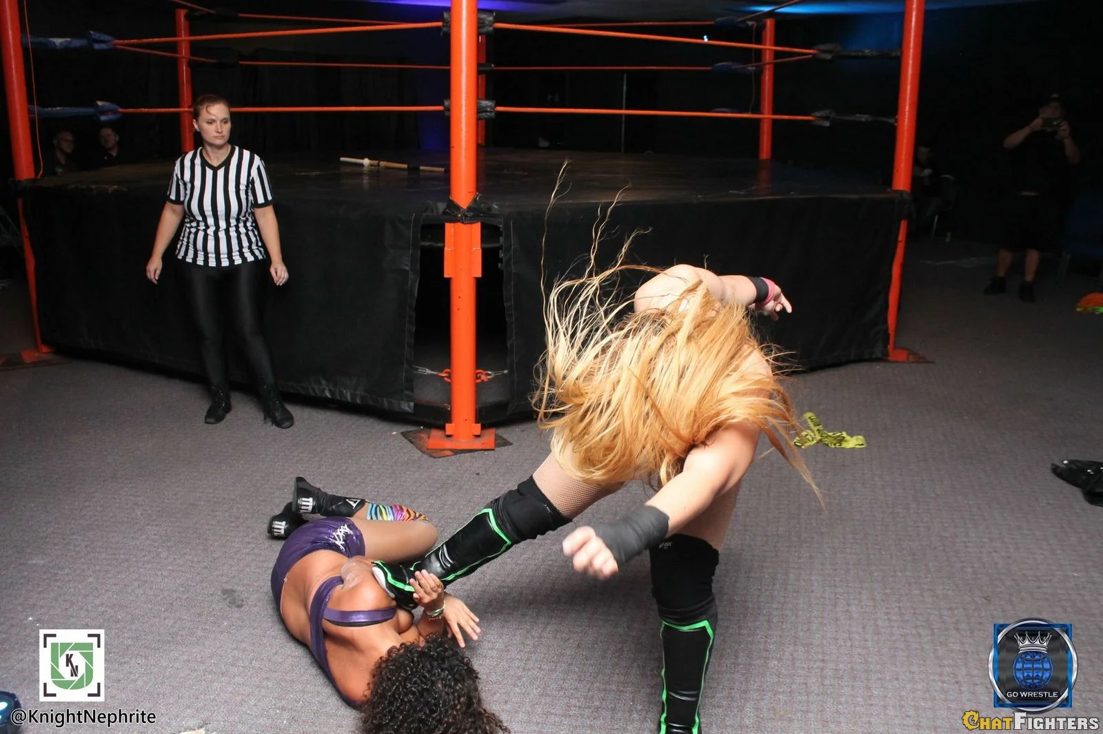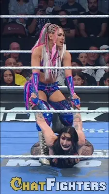 Busty_Beckie_Keegan: I shake my head to clear it, I look around as I expect you to follow up and attack me, but instead you are off at the ring skirt, pulling out items from under the apron and shoving them into the ring... I puff and gasp and then suddenly, Aditi, appears beside me and pulls me up to my feet, encouraging me to go get you... Wobbling on my legs I grab a chair and fold it, and then grab another chair and fold it... You are back in the ring, and the referee is now starting to count... 1... 2... 3... I pick up the chairs and stumble towards the ring... 4... 5... 6... when I get to the ring apron, I slide the chairs into the ring under the bottom rope and then climb up the side of the ring apron and roll into the ring under the bottom rope...
